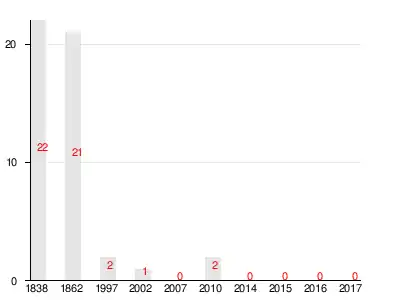 | 1838 | 1862 | 1997 | 2007[17] | 2010[18] | 2014[19] | 2015[20] |