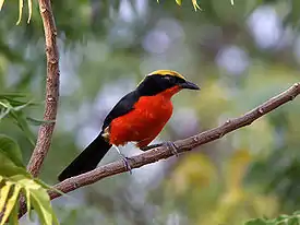 - Laniarius atrococcineus (Burchell, 1822) — Красногрудый певчий сорокопут
