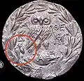 Монета из Афин: указано место с цикадой