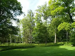 - парк, нынешняя перепланировка относится к 1875 году. Перед главным зданием растут рядами ясени, клёны, у каменной ограды — несколько вязов. К огороженному ближнем парку прилегает лесопарк площадью около 2,3 гектара. В дендрологическом отношении парк небогатый (35 таксонов). При инспектировании 20.10.2017 находился в плохом состоянии[7];