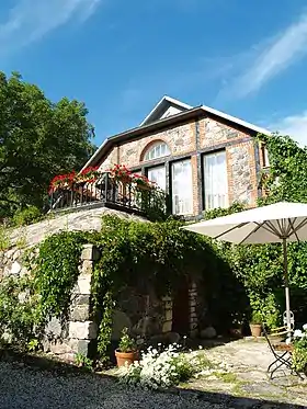 - столярная мастерская, построена в 1886 году в том же стиле, что и кузница. На переднем фасаде эмблема с изображением рубанка, пилы, долота и сверла. Летом у здания, на земле, плотно покрытой плитами из плитняка, открывается уличное кафе. При инспектировании 2.09.2014 состояние было удовлетворительным[12];