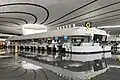 Непосредственно под зданием терминала будет находиться железнодорожная станция из 5 линий шириной 270 м. Под терминалом поезда могут двигаться со скоростью 300 км/ч; для компенсации возможных вибраций было использовано 1100 демпферов, создающих амортизирующую подушку для всего здания терминала[4].