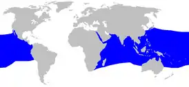 Пелагических лисьих акул часто путают с лисьими акулам, поэтому их ареал может быть шире, чем ныне известно. Они широко распространены в Индо-Тихоокеанской области, есть отчёты об их присутствии у берегов ЮАР, в Красном море, в Аравийском море (у побережья Сомали, Пакистана и между Оманом и Индией), Китая, на юго-восточной Японии, северо-восточной Австралии, Новой Каледонии, Таити, Гавайских островов, в Калифорнийском заливе и на Галапагосах[6].
