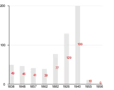 Согласно топографической карте 1931 года, деревня насчитывала 34 крестьянских двора.