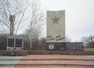 | Мемориал погибшим в годы Великой Отечественной войны в селе Саловка. | Мемориал погибшим в годы Великой Отечественной войны и памятник Герою России, участнику второй чеченской войны Н. Н. Володину в селе Большая Елань. |