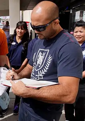 ![]() Би Джей Пенн раздаёт автографы на своей новой автобиографии "Why I Fight" | |