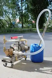 - Дозирующие насосы с приводом от гидромотора — наиболее современная система и простая в эксплуатации система, не требует внешнего источника энергии работает в широком диапазоне расходов и давления. Проста и надежна в эксплуатации. Недостатки — дозирующий насос находится в непосредственной близости от питающего трубопровода — наличие всасывающего трубопровода подачи пенообразователя.