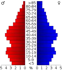 Население округа по возрастному диапазону по данным переписи 2000 года распределилось следующим образом: 22,8 % — жители младше 18 лет, 11,3 % — между 18 и 24 годами, 29 % — от 25 до 44 лет, 23,8 % — от 45 до 64 лет и 13,1 % — в возрасте 65 лет и старше. Средний возраст жителей округа составил 37 лет. На каждые 100 женщин в округе приходилось 95,3 мужчин, при этом на каждых сто женщин 18 лет и старше приходилось 92,3 мужчины также старше 18 лет.