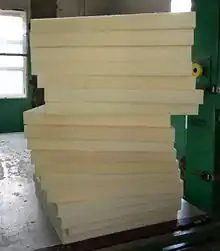 Применение жёстких пенополиуретанов с закрытой клеточной структурой для строительства мотивируется очень низкой теплопроводностью (0,029 — 0,041 Вт/(м•K)[2], малой паропроницаемостью, хорошей адгезией и гидроизоляционными характеристиками. Используются как вязкие самовспенивающиеся составы для заливки или нанесения на месте, так и в виде готовых листов. Высокие коэффициенты адгезии делают этот материал весьма универсальным, он может с одинаковым успехом наноситься на бумагу, металл, древесину, штукатурку, кирпич, рубероид, черепицу, металлические трубы и многое другое. Возможность производить и наносить пенополиуретан непосредственно на строительной площадке значительно снижает сопутствующие расходы.