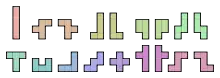 Например, вот восемь возможных способов ориентации пентамино L, F, P, N и Y: