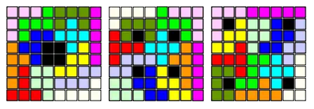 Представленное на рисунке решение[8], найденное А.ван де Ветерингом, обладает интересным свойством: каждое пентамино используется для утроения девяти из остальных, по одному разу в каждой. Таким образом, из 9 комплектов исходных фигур пентамино можно одновременно сложить все 12 утроенных пентамино.