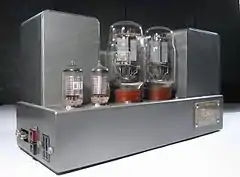 В современных ламповых УНЧ начального уровня широко используются пентоды послевоенной разработки EL34 и EL84 (аналог — 6П14П[82]). Однако в качественных музыкальных УНЧ предпочтительны довоенные триоды прямого накала, в гитарных УНЧ — довоенные же лучевые тетроды. Последнее, вероятно, — следствие исторического разделения рынка на «европейские пентоды» и «американские лучевые тетроды»[83]. Мнение о лучшей линейности ламп довоенной разработки объясняется тем, что они были оптимизированы под низкие искажения — настолько низкие, насколько позволяла технология[84]. «Усиление было дорого» (Morgan Jones), поэтому лампы и усилители тех лет проектировались так, чтобы дать приемлемый уровень искажений минимальным числом ламп без использования обратной связи[85]. Да и сама теория обратной связи только-только создавалась. Удешевление ламп в 1940-е годы изменило конструкторский подход: с использованием глубокой ООС линейность лампы отошла на второй план[84][33]. Поэтому, например, классический послевоенный пальчиковый пентод EL84 (6П14П) проигрывает по искажениям довоенному лучевому тетроду 6V6[33] (аналог — 6П6С)[26], хотя и превосходит его по другим параметрам, в частности, крутизне характеристики, выходной мощности. Лампы локтальной серии 1940-х годов, за исключением триода 7AF7[86], весьма линейны — они имеют и «довоенную» конструкцию электродов, и все преимущества цельностеклянных ламп[87].