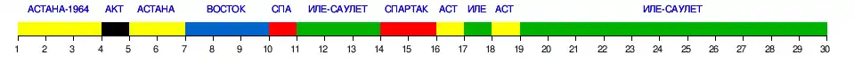| Астана-1964 | 1 | 2 | 1 | 2 | 2 | 3 | 2 | 2 | 3 | 3 | 4 | 3 | 3 | 3 | 3 | |