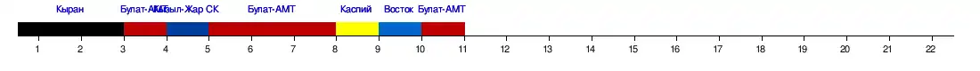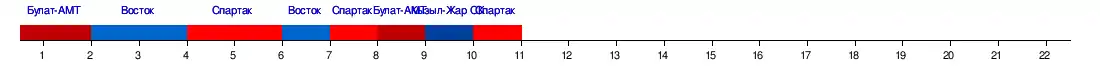 | Экибастуз | 1:5 | 1:2 | 1:1 | 0:1 | 2:3 | 0:2 | 0:2 | 0:1 | 2:0 | 1:0 | 1:1 | 1:2 |