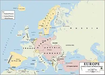 - Антанта: Российская империя, Британская империя, Французская республика и союзники.