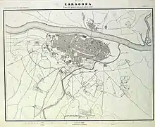 Сарагоса была защищена двумя средневековыми стенами и двумя реками — Эбро на северо-востоке и Уэрвой на юге, — но запад был открыт для нападения. Сила города, однако, заключалась в лабиринте мощных оборонительных зданий с узкими улочками, которые было легко перекрыть баррикадами.