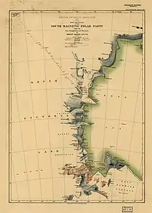 Параллельно, 5 октября 1908 года отправилась Северная партия (Дэвид, Моусон, Маккей) для достижения Южного магнитного полюса. Серьёзной проблемой стал поиск прохода внутрь материка с побережья Земли Виктории. 1 декабря был открыт ледник Дригальского, на пересечение которого понадобилось десять суток; 16 декабря начался подъём на Полярное плато. 16 января был достигнут магнитный полюс, располагавшийся тогда в точке 72°15’ ю. ш., 155°16’ в. д. В начале февраля измождённые исследователи были подобраны «Нимродом». Ранее судно эвакуировало и Западную партию в составе геолога Реймонда Пристли, Бертрама Армитеджа и туриста Филиппа Броклхёрста, которых унесло оторвавшееся ледяное поле. Несмотря на то, что главная цель не была достигнута, экспедиция на «Нимроде» доставила обширную научную информацию об Антарктическом материке, хотя и оказалась в «тени» последующей экспедиции Роберта Скотта.