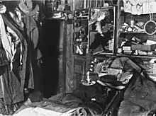 Зимовочной команде, включавшей 16 человек, предстояло разместиться в жилой комнате площадью 9,9 × 5,8 метра, что было меньше, чем жилое помещение Броклхёрста в Тринити-колледже. Из двух окон открывался вид на Эребус и озеро, чья ровная поверхность была удобна для выгула лошадей и футбольных матчей. Подветренная сторона была прикрыта конюшней, изолированной тюками сена и упаковками маиса. Внутреннее помещение было отгорожено упаковочными ящиками, которые использовались вместо мебели. Мюррей сам изготовил длинный общий стол, который занимал весь центр хижины. Когда он не использовался, то подтягивался на блоках к потолку по флотскому обычаю. Кухонная плита питалась антрацитом и топилась круглосуточно, поскольку обогревала всё помещение. Именно здесь кок Робертс готовил три раза в день горячую пищу, каждый день пёк хлеб и растапливал лёд на воду. Средняя температура в доме была лишь на 60—70 градусов Фаренгейта выше, чем на улице. Освещался дом четырьмя ацетиленовыми горелками, газ для которых вырабатывался из карбида; газовый генератор разместили в тамбуре. Быт в экспедиции Шеклтона разительно отличался от порядков, принятых в экспедициях Р. Скотта. Граница между офицерами и нижними чинами отсутствовала, все участники экспедиции обладали равными правами, а Ф. Броклхёрст свидетельствовал, что «Шеклтон умел сделать разных людей одной командой и давал почувствовать полезность для общего дела, пусть это было и не так». Адамс также отмечал, что Шеклтон умел внушить «почти сверхъестественную» веру в себя. Для начальника выгородили угол справа от входа, который служил библиотекой; Шеклтон не хотел жить вместе со своими людьми, чтобы не давить на них круглосуточно своим авторитетом. Он не настаивал на формализме в общении, его называли «Босс»[75]. Кроме того, Шеклтон боролся с британским шовинизмом и настоял, чтобы к австралийцам относились так же, как и англичанам. Для зимовщиков были выделены блоки 6 × 7 футов, в которых располагались по двое. Для перегородок служили ящики или растянутые одеяла. Ближе всех к Шеклтону располагались Адамс и Маршалл; Адамсу же принадлежало полное собрание сочинений Диккенса. Маршалл держал у себя аптеку и его загородка служила амбулаторией. На своей занавеске художник Марстон изобразил в полный рост портреты Наполеона и Жанны д’Арк, а для Марстона и Дэя — горящий камин с цветочной вазой на полке[76].