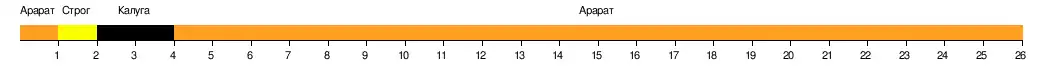 | Арарат (Москва)* | 26 | 19 | 6 | 1 | 52 − 17 | +35 | 63 | ||