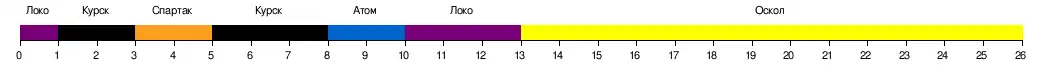 | Распадская (Междуреченск) | 14 | 7 | 3 | 4 | 20 − 13 | +7 | 24 | ||