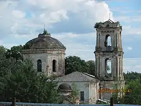 Троицкая церковь с колокольней и башней церковной ограды в Первитине.