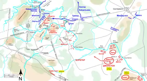 Дальнейшие события Макдауэлл предугадать не мог. Он допускал, что Борегар, обойдённый с фланга, начнёт отступление или атакует его армию. Приказы Макдауэлла не предполагали дальнейшего наступления, в них не содержалось слов «атака» или «штурм». Этим план Макдауэлла принципиально отличался от плана Борегара, который рассчитывал именно атаковать Сентервилл[23].