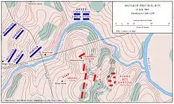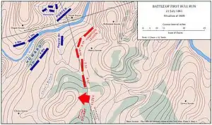 Первое сражение при реке Булл-Ран (англ. First Battle of Bull Run), также Первое сражение при Манассасе[''i'' 1] — первое крупное сухопутное сражение Гражданской войны в США. Состоялось 21 июля 1861 года возле Манассаса (штат Виргиния). Федеральная армия под командованием генерала Ирвина Макдауэлла атаковала армию Конфедерации под командованием генералов Джонстона и Борегара, но была остановлена, а затем обращена в бегство. Федеральная армия ставила своей целью захват важного транспортного узла — Манассаса, а армия Борегара заняла оборону на рубеже небольшой реки Булл-Ран. Федеральный главнокомандующий Ирвин Макдауэлл потратил два дня на рекогносцировки, и за это время на помощь Борегару пришла армия Шенандоа под командованием Джонстона.