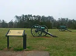 У южан имелось 53 орудия, сведённых в двенадцать подразделений. Все эти подразделения были сформированы из артиллерии ополчения штатов. Это были: 40 орудий образца 1841 года калибра 3,67 дюйма, 9 нарезных орудий калибра 3 дюйма, 4 полевые гаубицы калибра 4,62 дюйма[16].