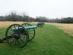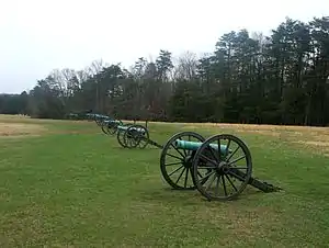 Федеральная артиллерия уступала по численности конфедеративной, но имела преимущество по дальнобойности: 51 % федеральных орудий были нарезными против 18 % в армиях Юга. Хотя северяне могли вести огонь в основном 3-дюймовыми снарядами, их орудия били на 1500—2000 метров, в то время как 6-фунтовые орудия Юга били только на 1000 метров. Таким образом, федеральная армия имела преимущество, пока вела дуэль на больших дистанциях, но на коротких южане получали преимущество из-за более крупного калибра[16].
