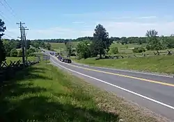 Когда 11-й Нью-йоркский полк отступал с холма Генри, рядом появилась кавалерия Джеба Стюарта, численностью около 150 человек. Двигаясь по Садли-Роуд, Стюарт случайно вышел прямо на правый фланг зуавов. Как часто случалось в тот день, Стюарт принял их за своих и крикнул: «Не отступать, парни, мы уже рядом!», но ньюйоркцы не обратили на него внимания. Уильям Блэкфорд потом вспоминал, что Стюарт спросил его, чей это полк, и Блэкфорд ответил, что он не знает, но слышал, что в армии Борегара есть полк зуавов[70]. Стюарт приблизился и, увидев знамёна полка, приказал кавалерии атаковать. Кавалерия рванулась в атаку колонной по четыре с дистанции в 70 метров, а с 30 метров развернулась влево, обрушившись на противника широким фронтом. Кавалеристы успели дать залп, но не очень точный, а зуавы дали залп в ответ. Каждая сторона впоследствии утверждала о серьёзных потерях противника[71][72].