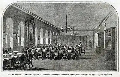 - В помещении кадетского корпуса в 1859-1861 годах проходили заседания Редакционной комиссии по освобождению крестьян, готовившей проекты актов и документов по Крестьянской реформе 1861 года.