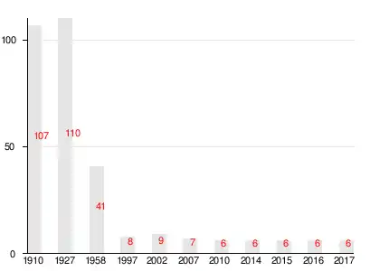 | 1910 | 1927 | 1958 | 1997 | 2007[12] | 2010[13] | 2014[14] |