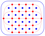 Если левую и правую красные кромки стянуть в две вершины, а верхнюю и нижнюю синие — «соединить проводом» и стянуть в одну, красная и синяя сетки становятся двойственными графами. Другими словами, красный соединяет вершины плоского графа без мостов,[6] синий — грани того же графа (рисунок 5). Можно отказаться от ограничений на граф, если заставить синего не соединять грани, а стирать рёбра. Поэтому у обобщённой игры правила получаются такие: