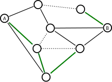 Есть связный мультиграф,[7] на котором отмечены две вершины А и Б. Игрок «Вырубить» своим ходом вырезает из графа ребро, игрок «Закоротить» фиксирует ребро, делая его неуязвимым к вырубанию. Закорачивающий выигрывает, если он смог зафиксировать маршрут от А до Б. Вырубающий — если он разделил эти вершины[8].