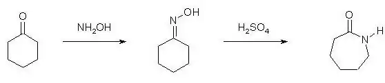 Перегруппировка Бекмана циклогексаноноксима является промышленным методом синтеза капролактама — мономера капрона (найлона-6):