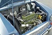 В отличие от современных автомобилей, построенных по такой схеме, коробка передач у «Мини» была трёхвальной и располагалась непосредственно в поддоне двигателя, имея общую с ним систему смазки. Впоследствии подобная компоновка силового агрегата распространения не получила.