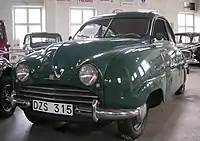 В конце сороковых годов народную малолитражку с передним приводом разработала и поставила в производство шведская фирма Saab. Модель Saab 92 была ударными темпами спроектирована ранее выпускавшим только военные самолёты шведским предприятием сразу после войны, и пошла в серию в 1949 году, причём прототип многих конструктивных решений угадать было несложно — немецкие DKW, хорошо изученные шведами в послевоенные годы. В частности, от них была унаследована компоновка с поперечным расположением двухцилиндрового двигателя, причём в отличие от прямого наследника ДКВ — ГДР-овского Trabant — сохранившего водяное охлаждение.