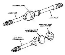Ввиду того, что известные к тому времени шарниры равных угловых скоростей — сухариковые типа Tracta и шариковые типа «Рцеппа» — были защищены патентами, фирма Alvis решила использовать обычные карданные шарниры. Чтобы побороть их асинхронность, внешний шарнир полуоси представлял собой скользящий шарнир типа «колокол» (как внутренний шарнир полуоси ЗАЗ-965), геометрический центр которого совпадал с осью вращения шкворня.
