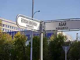 - ул. Молодежная → ул. Жастар (16 марта 2018 г.)[4]