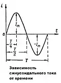 Время , в течение которого переменный периодический ток совершает полный цикл своих изменений, возвращаясь к своей исходной величине, называется периодом переменного тока.
