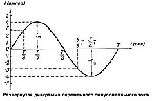 - График зависимости силы переменного тока от времени называется развёрнутой диаграммой переменного тока.