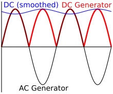 Постоянный ток может быть преобразован в переменный с помощью инвертора.