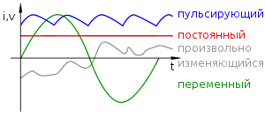 Переме́нный ток — электрический ток, который с течением времени изменяется по величине, обычно и по направлению в электрической цепи[1].