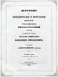 | Перемены в обмундировании и вооружении войск российской Императорской армии с восшествия на престол государя императора Александра Николаевича | |