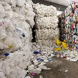 При этом, в мире переработке подвергается около 14 % потребляемого материала, бо́льшая часть захоранивается на полигонах или разлагается в природе[8][9]. Согласно прогнозам, если существующее положение дел останется без изменений, к 2050 году на полигонах будет храниться около 12 миллиардов тонн пластика. Общей вес отходов будет в 35 000 раз тяжелее, чем здание Эмпайр-стейт-билдинг[8].