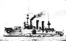 Вооружение: четыре 254-мм, одиннадцать 152-мм, двадцать 75-мм, двадцать 47-мм и шесть 37-мм пушек, два 63,5-мм десантных орудия Барановского, пять 381-мм торпедных аппаратов.