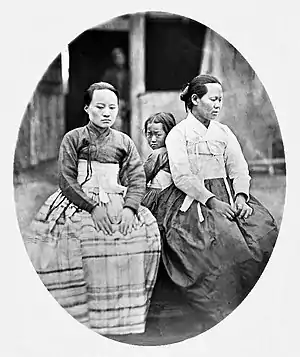 - 1863—1884: стихийное переселение безземельных корейцев-простолюдинов («пхёнминов»)[6] в российское Приморье. Сам факт появления границы с Россией встревожил корейских правителей, и в Юкчин была выслана пограничная армия из 4 000 челoвeк. Однако необходимость содержать ещё и 4 000 воинов тяжёлым бременeм леглa на плечи местных крестьян и побудила их к бегству в Россию, где российская армия, по крайней мере, платила за поставки продовольствия. Корейская династия Чосон препятствовала переселению своих подданных в Россию, введя за это смертную казнь. Российская же администрация не препятствовала этому потоку. Более того, переселенцам выдавали пособия. Уже к 1864 году корейцы посеяли и собрали столько хлеба, что смогли обойтись без российских пособий. K 1867 году в Приморье уже было три корейских деревни, в которых жили жили без малого 2 тысячи человек. Наиболее массовым был приток в 1869—1870 гг, когда в Россию прибыло свыше 6 500 корейцев. Осенью 1869 года после сильного наводнения на севере Кореи границу с Российской империей перешли более 1 800 голодающих. Зимой 1869 года в Россию перешли ещё 4 500 голодающих и разорённых людей. Ho 20 декабря 1869 года местная российская администрация, напуганная столь массовым притоком людей, решила принимать «энергичные меры к приостановке переселения корейцев». Депортации никто не подвергся, но были приняты первые меры по отселению от границы и расселению по территории Дальнего Востока.
