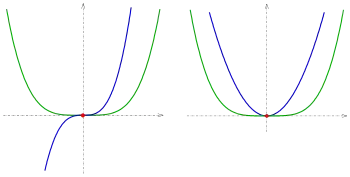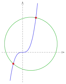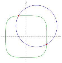 Две кривые в (двумерном пространстве), которые непрерывно дифференцируемы (то есть нет резкого изгиба), имеют точку пересечения, если они имеют общую точку плоскости и имеют в этой точке