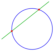 если . Если это условие выполняется со строгим неравенством, то существуют две точки пересечения; в этом случае прямая называется секущей линией окружности, а отрезок прямой, соединяющий точки пересечения, называется хордой окружности.