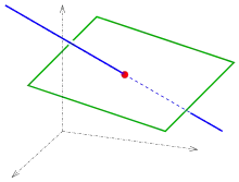 Пересечение прямой и плоскости в общем положении в трёх измерениях является точкой.